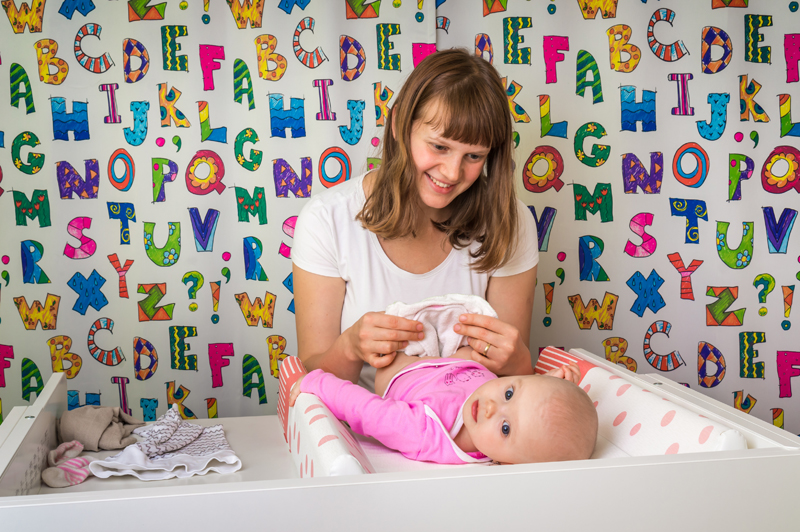 So for that reason it pays to be organised when changing your baby. Before putting her down make sure that you already have a change of clothes ready if necessary. Try to get a change table that has a shelf underneath to store your wipes, nappies, creams etc or have another table nearby. Put the more used items close to the front and on the higher shelf if you have multiple. Make sure you squat to get to the shelf and don’t twist to reach items.